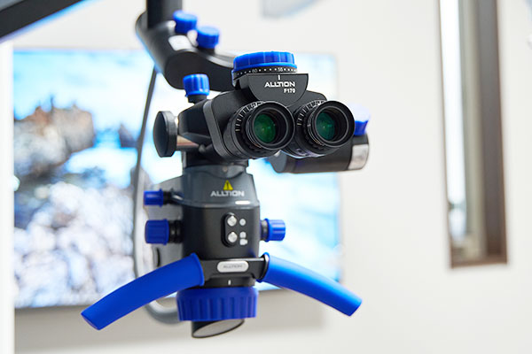 肉眼では見えない患部を高倍率で拡大して見ながら治療を行うための歯科用顕微鏡です。自費診療では基本的に使用し、保険診療でも必要な場合に活用し、精密むし歯治療や根管治療の成功率を高めます。