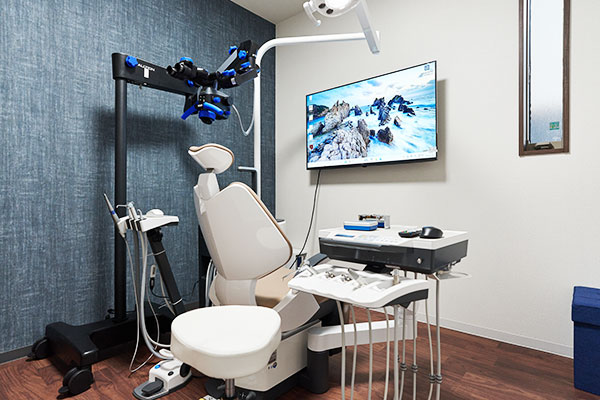 通常の診療室とは別に、インプラント手術などの外科処置や、高度な治療を専門に行うための特別診療室を設けています。徹底した衛生管理のもと、安全かつ集中して処置を行います。