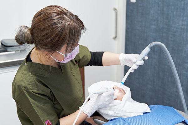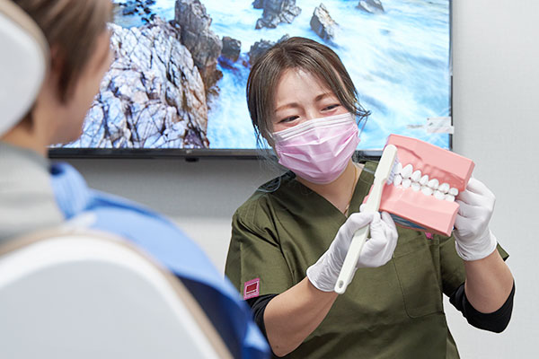 歯周病治療は、歯科医師だけでなく、歯科衛生士と患者さまの協力が不可欠です。当院では「担当衛生士制」を導入しており、いつも同じ衛生士が患者さまを担当します。