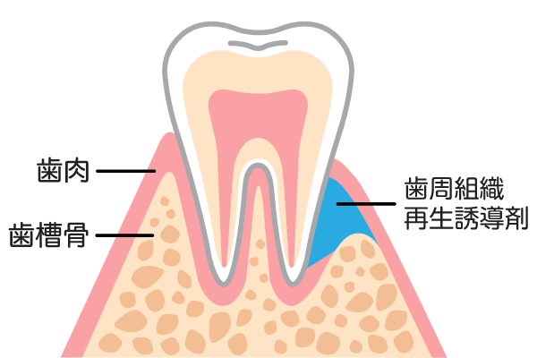 歯周病によって溶かされてしまったあごの骨や歯周組織を、薬液や特殊な材料を用いて再生させる治療法です。「リグロス」という成長因子を含む薬剤や、人工骨、特殊な膜(メンブレン)などを、症例に応じて単独または組み合わせて使用します。